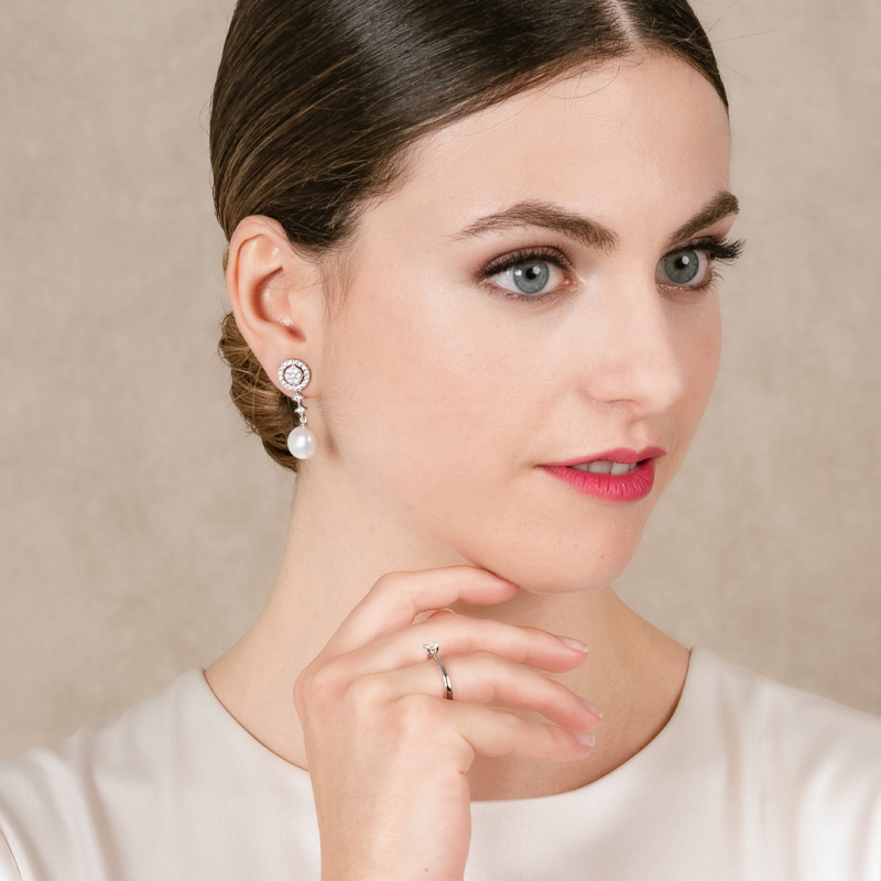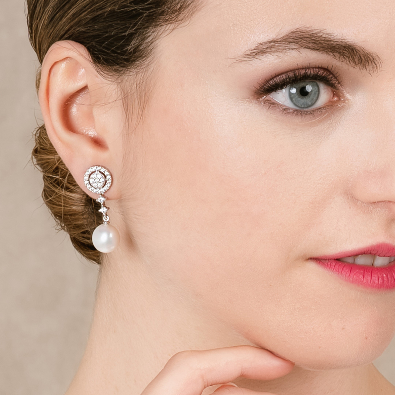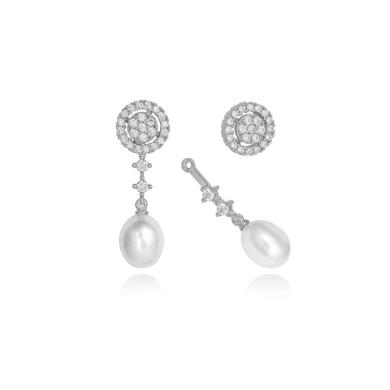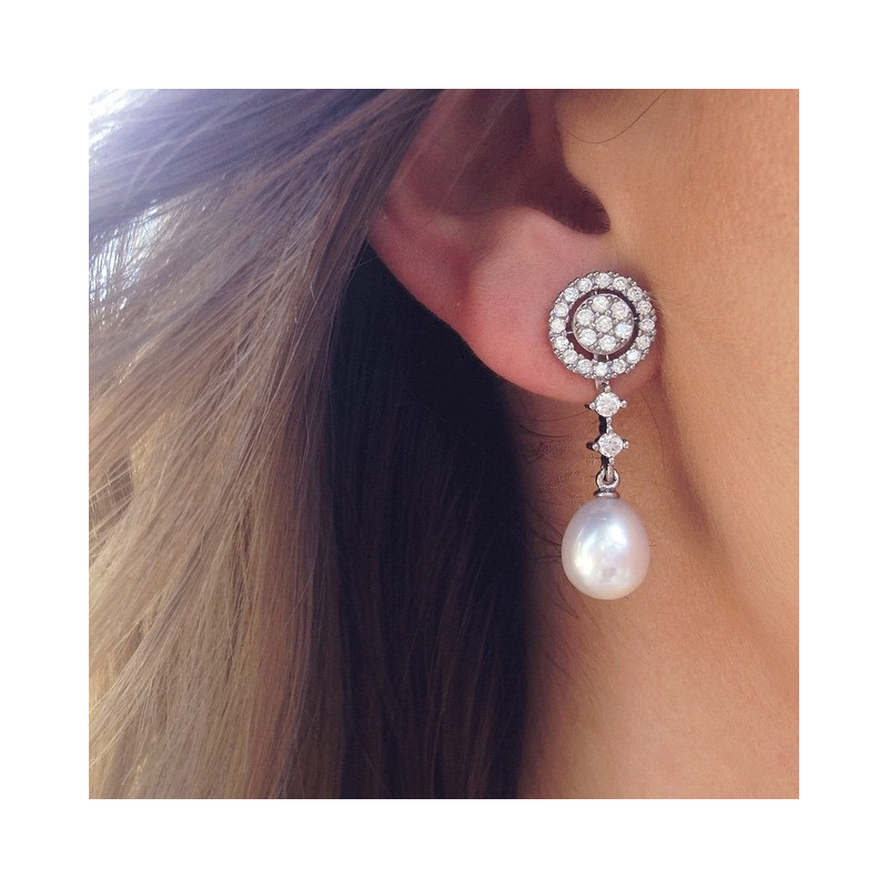 PENDIENTES DE MARINA GARCIA PLATA DE PRIMERA LEY DESMONTABLES CON ZIRCONITAS Y PERLAS CULTIVADAS NATURALES. LARGO 3CM